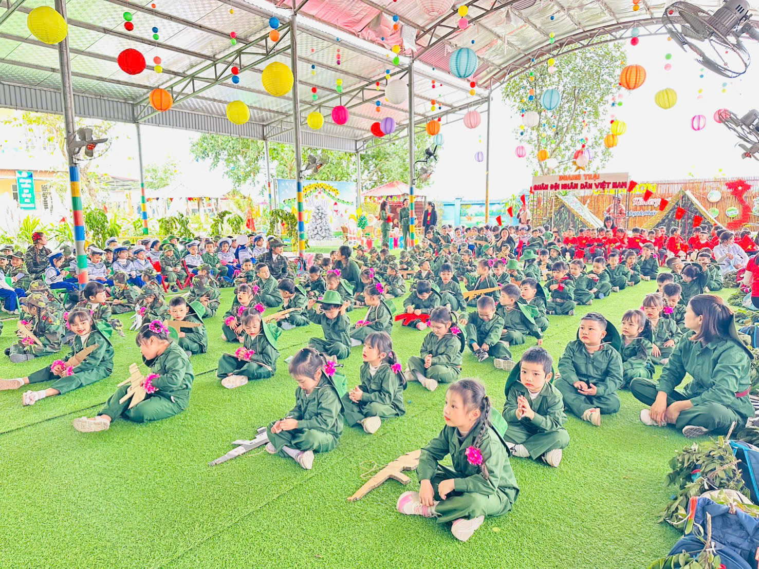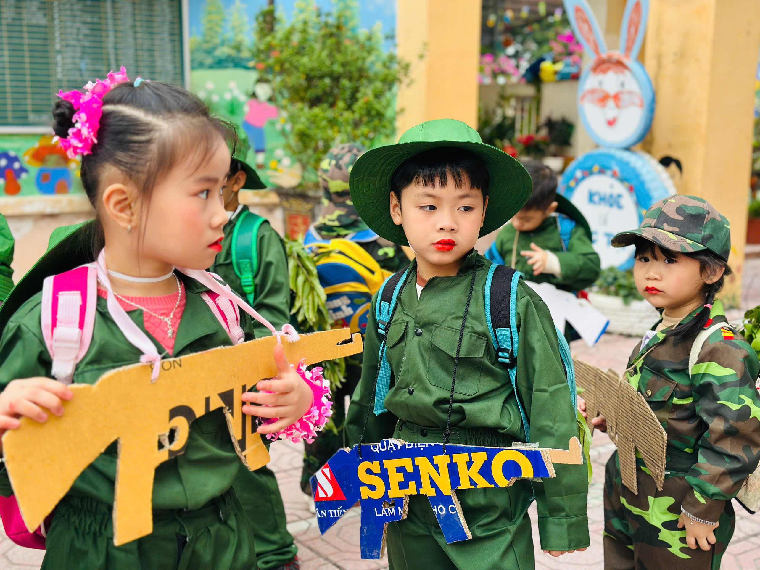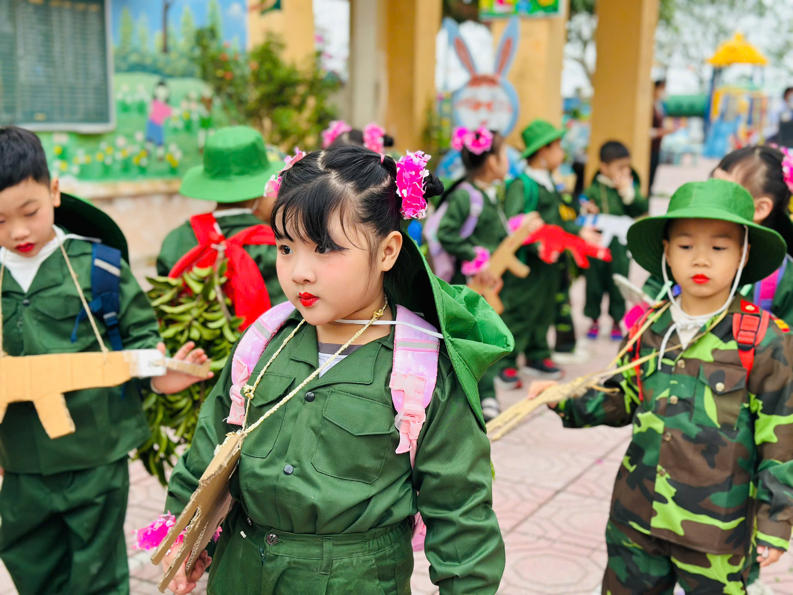 Thông qua hoạt động, các bé không chỉ được vui chơi, trải nghiệm mà còn được giáo dục truyền thống yêu nước, lòng biết ơn và niềm tự hào về hình ảnh người chiến sĩ Quân đội Nhân dân Việt Nam.