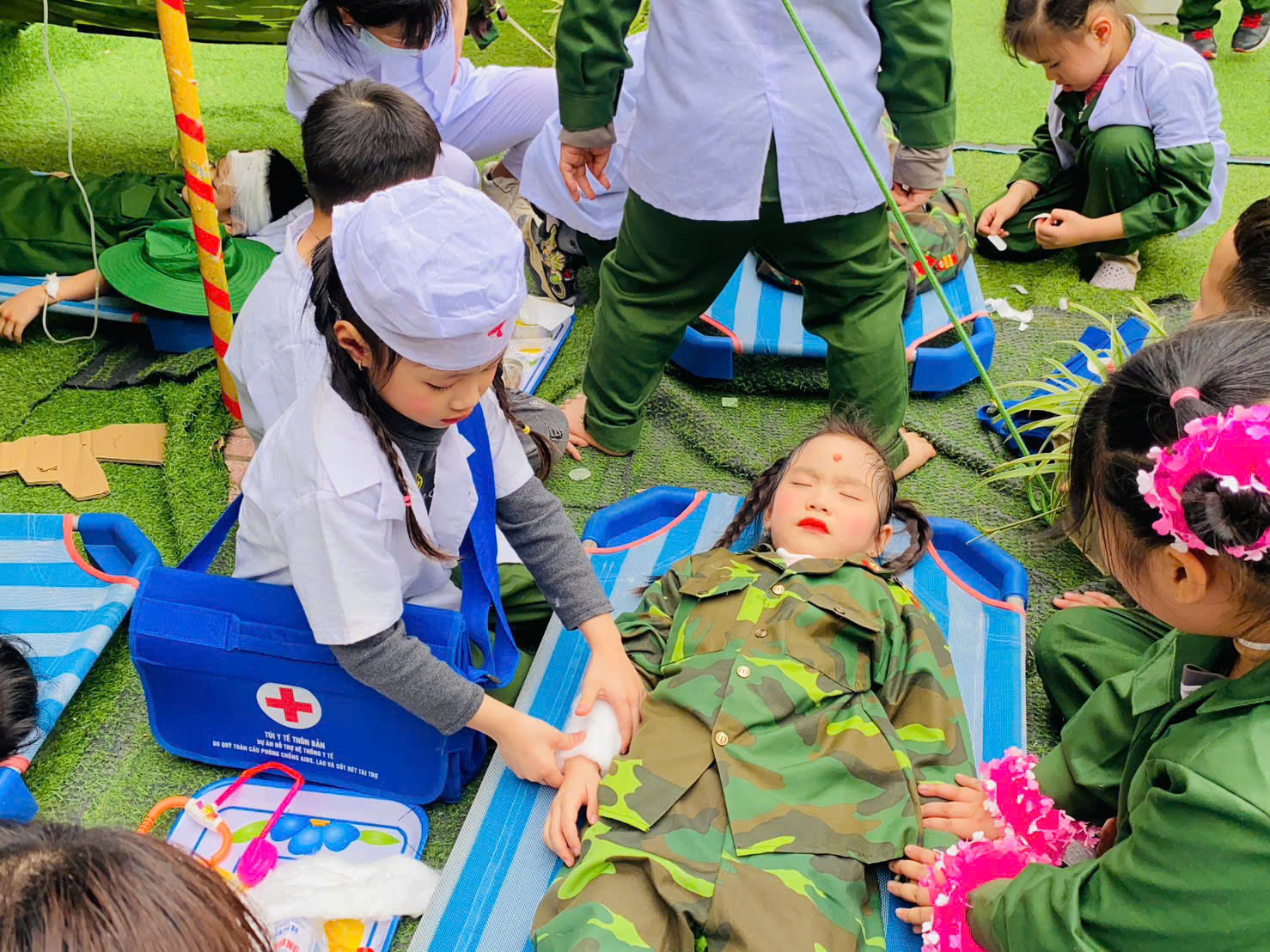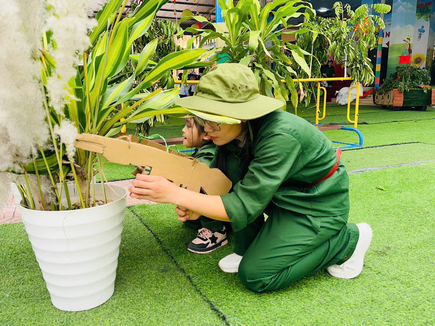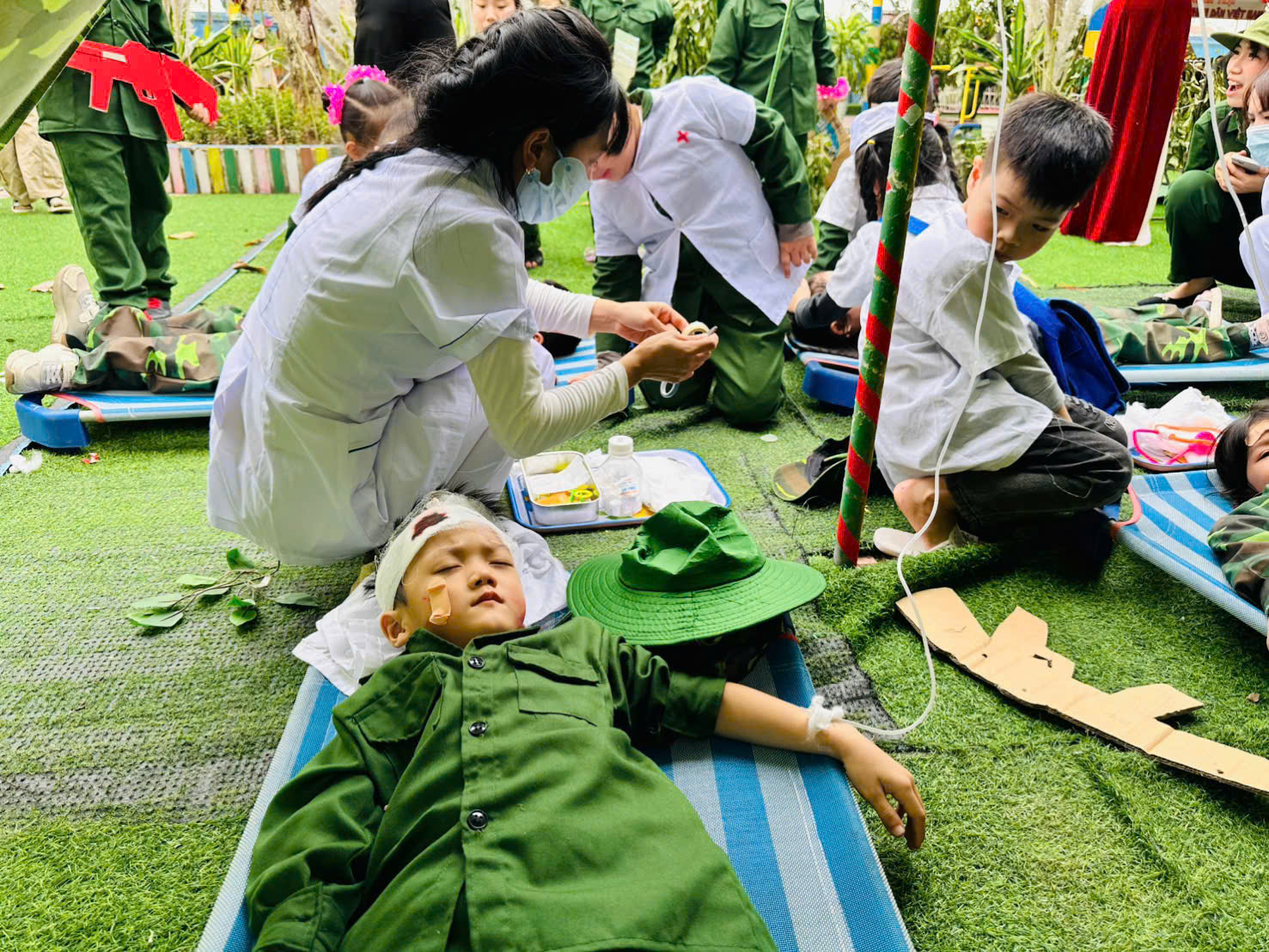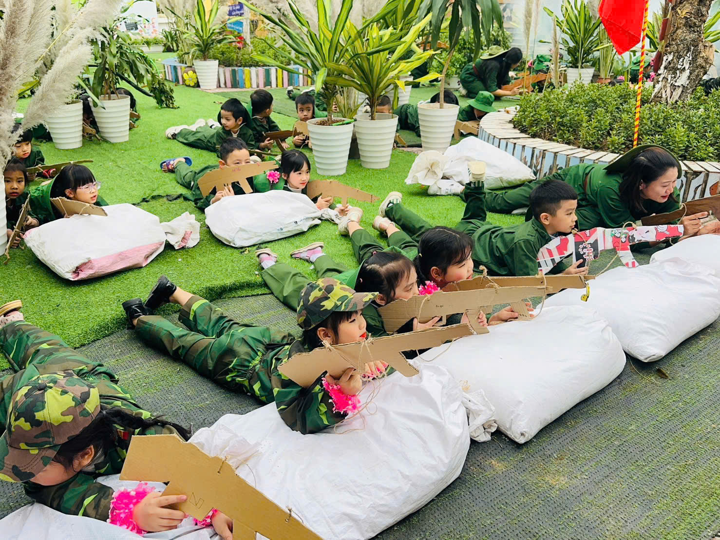 Thông qua hoạt động, các bé không chỉ được vui chơi, trải nghiệm mà còn được giáo dục truyền thống yêu nước, lòng biết ơn và niềm tự hào về hình ảnh người chiến sĩ Quân đội Nhân dân Việt Nam.