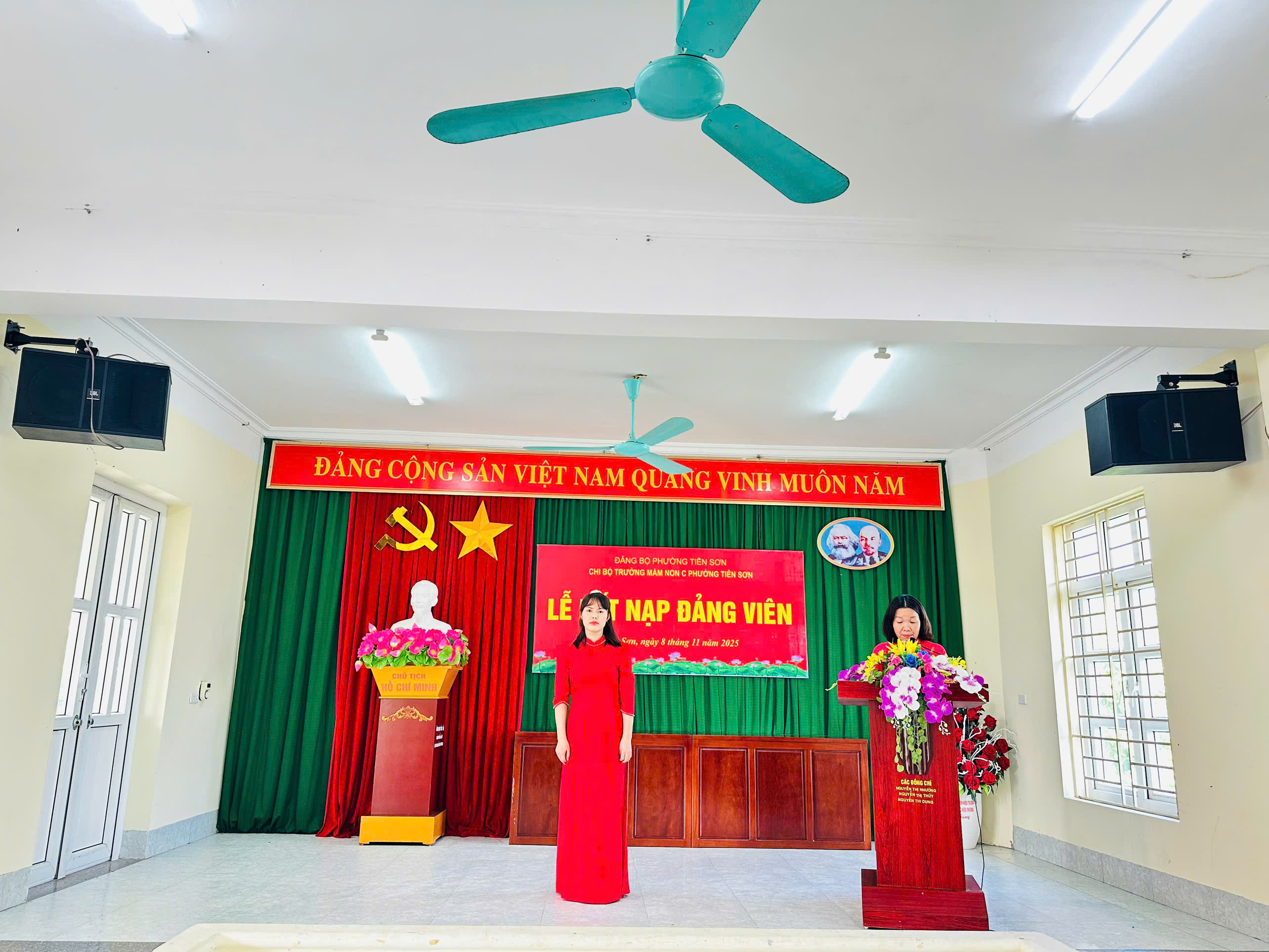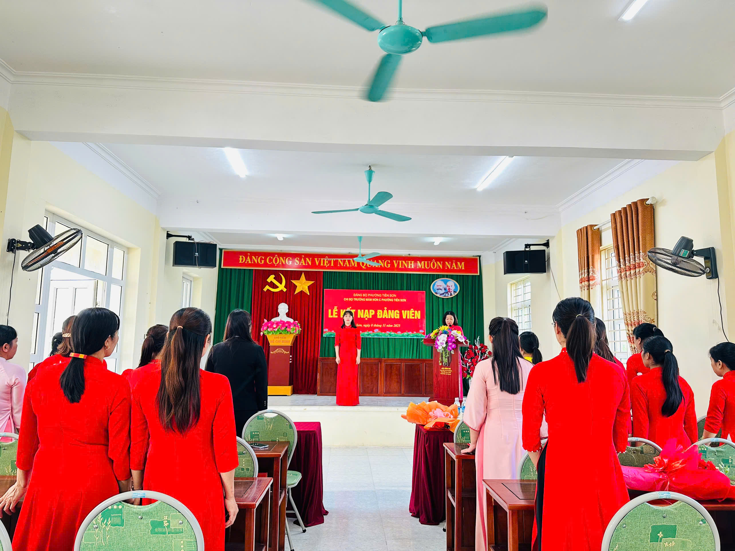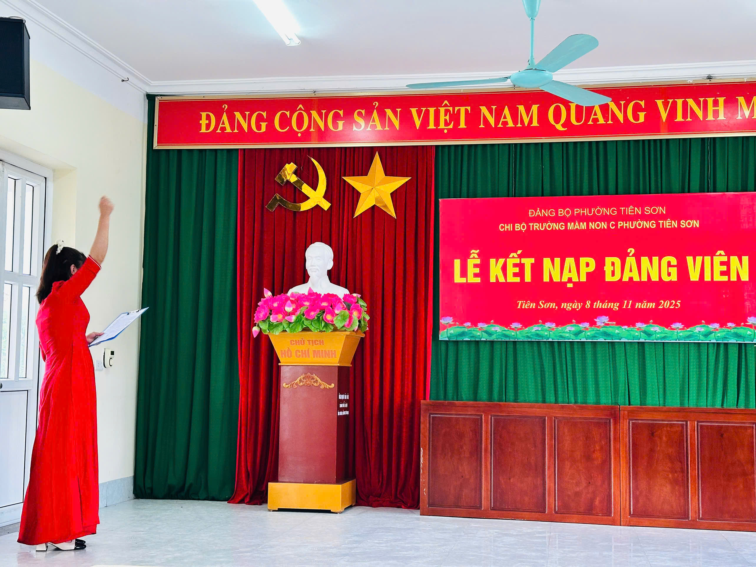 Chiều ngày 08/11/2025, Chi bộ Trường Mầm non C phường Tiên Sơn long trọng tổ chức Lễ kết nạp Đảng viên cho quần chúng ưu tú Bùi Thị Hồng Nhung.