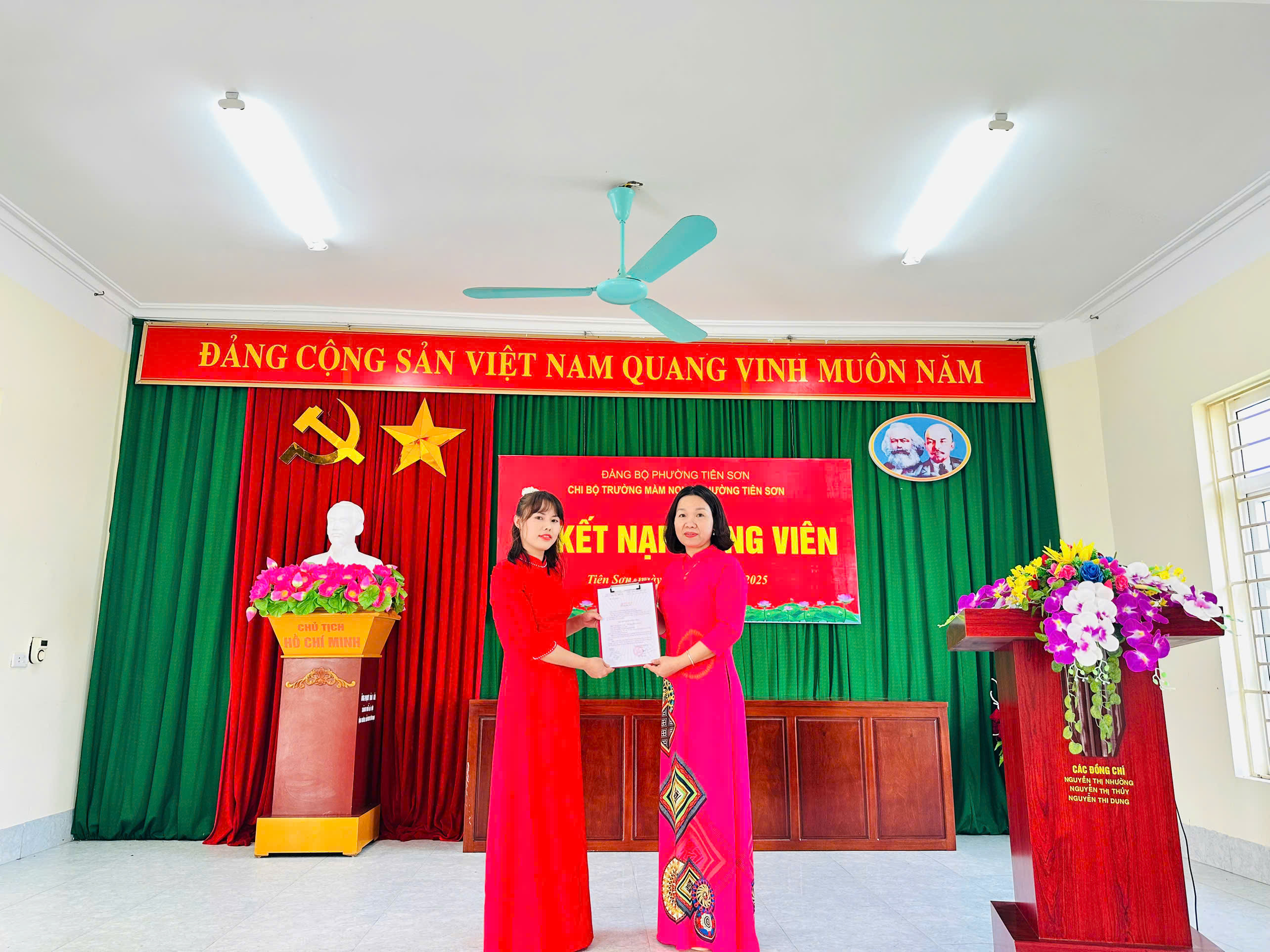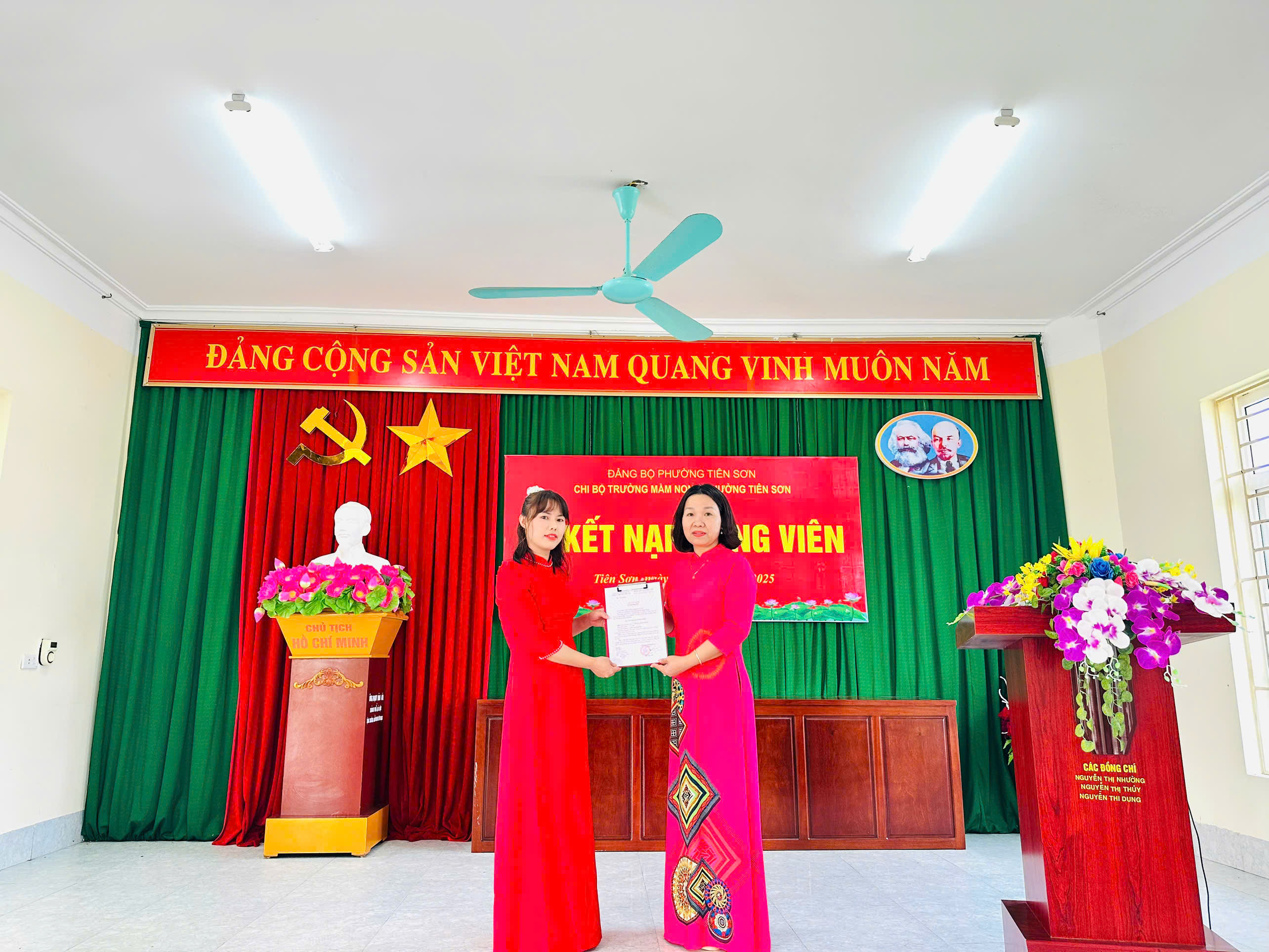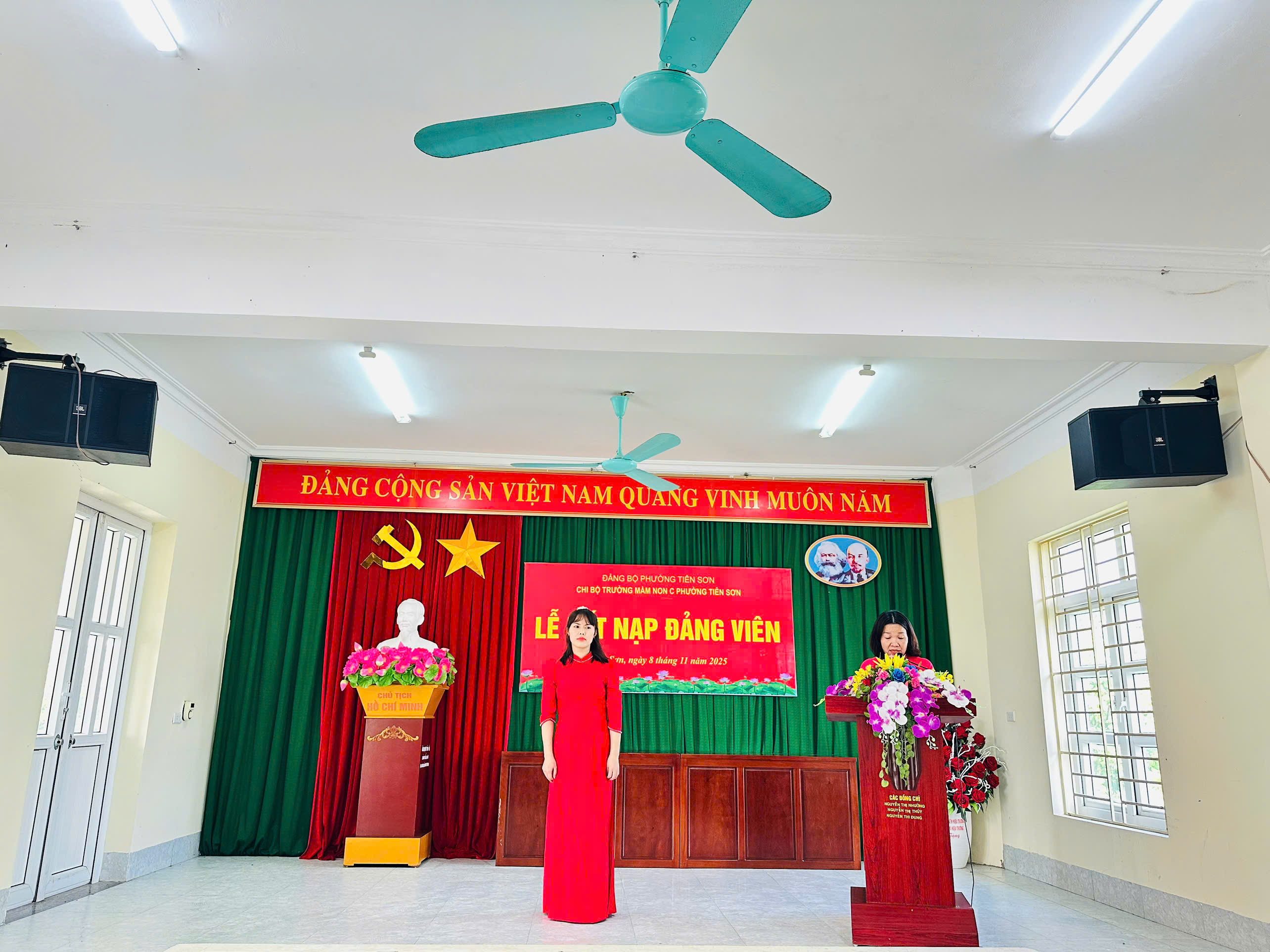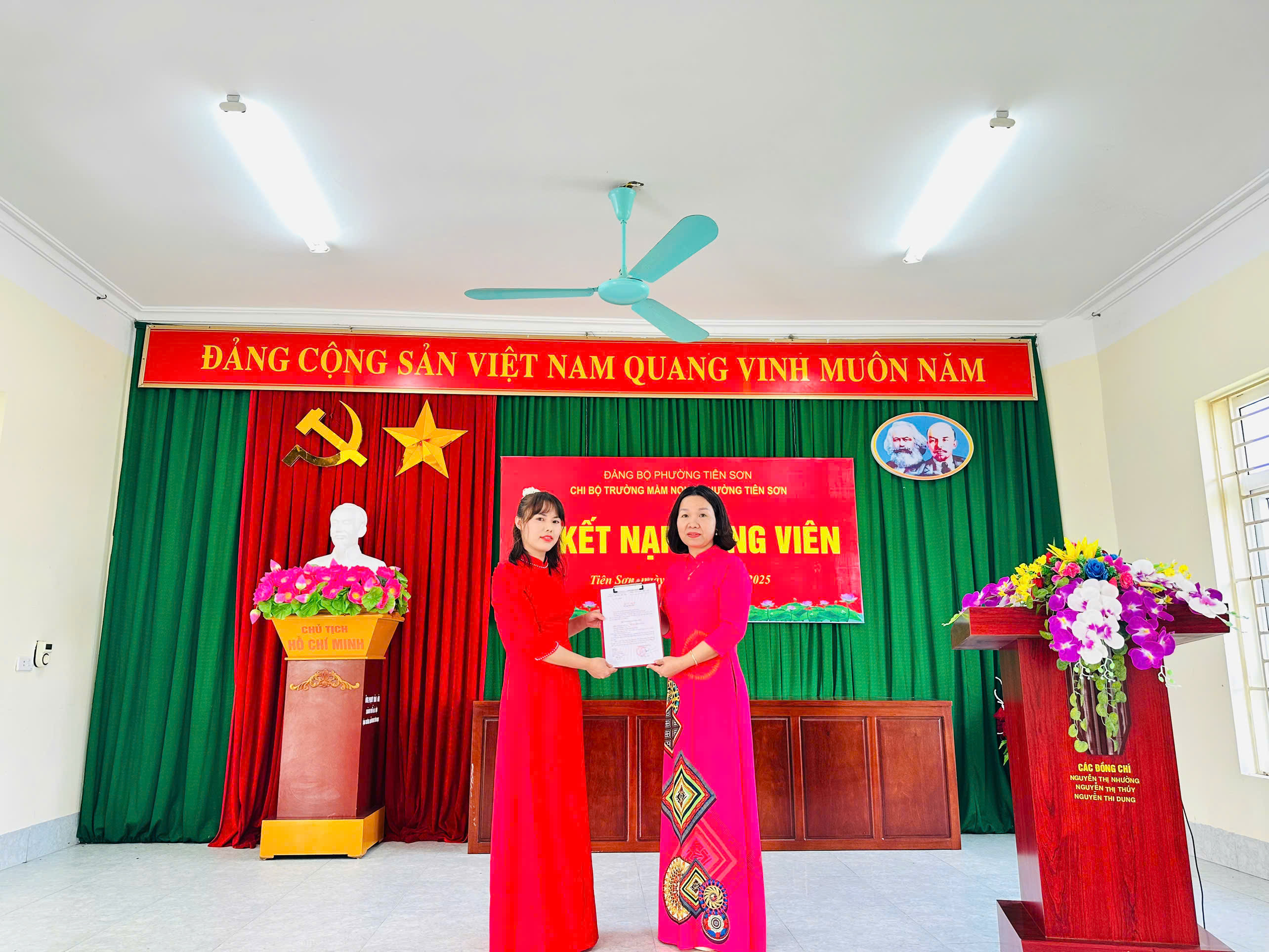 Chiều ngày 08/11/2025, Chi bộ Trường Mầm non C phường Tiên Sơn long trọng tổ chức Lễ kết nạp Đảng viên cho quần chúng ưu tú Bùi Thị Hồng Nhung.